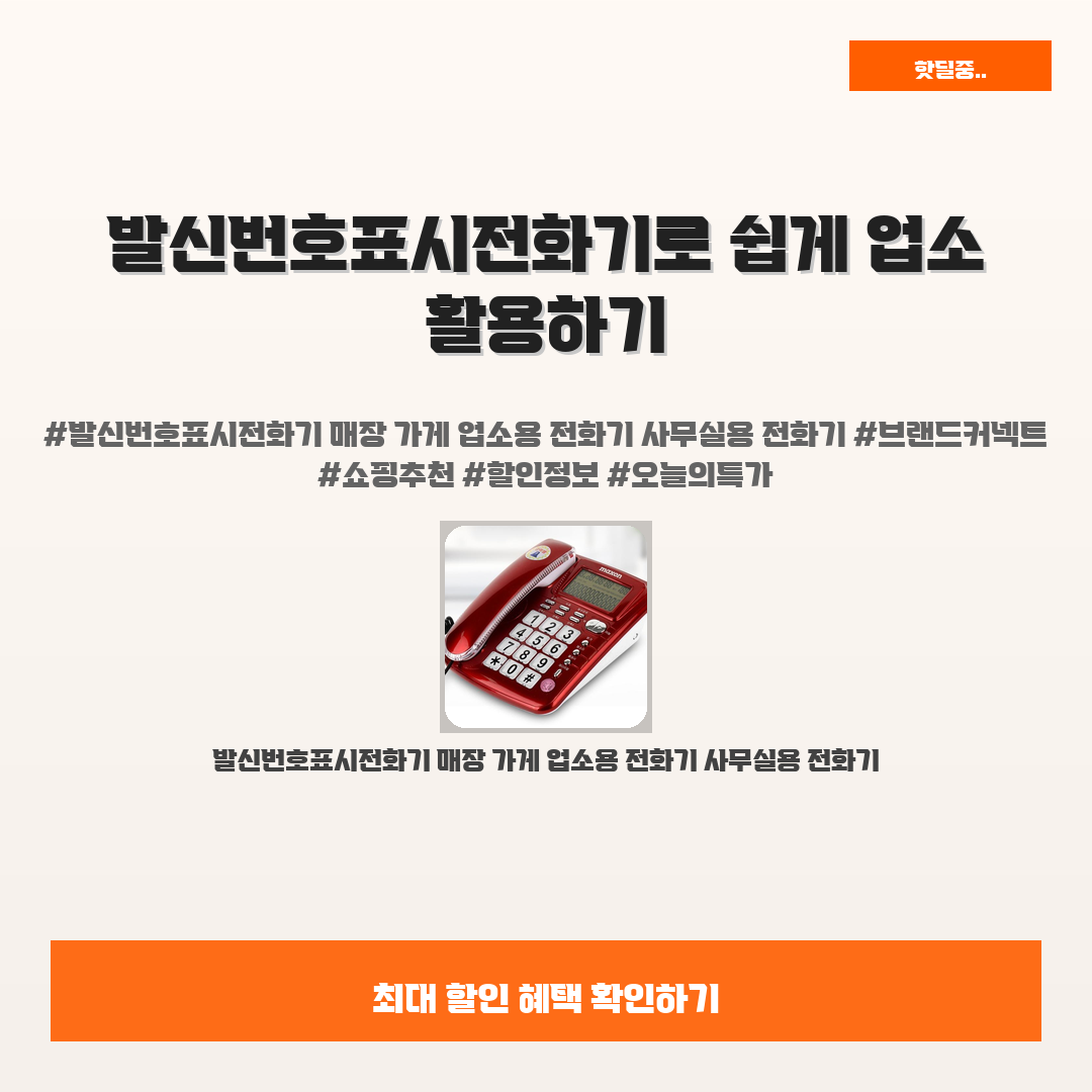 🛍️ 이 포스팅은 네이버 쇼핑 커넥트 활동의 일환으로,판매 발생 시 수수료를 제공받습니다.오늘 소개할 제품은 단언컨데,,그야말로 업소에 최적화된 발신번호표시전화기 매장 가게 업소용 전화기입니다.최근 매장에서 효율적인 소통 방법을 찾고 계신가요? 고객과의 연락을 원활하게 하는 건 정말 중요하죠. 발신번호표시전화기가 바로 그 해결책입니다!이 전화기는 업소용 및 사무실용으로 최적화되어 있어 고객들에게 신뢰를 줄 수 있습니다. 사용법도 간단하고 가성비도 뛰어나 각종 할인 혜택까지 제공하니 정말 놓칠 수 없는 기회입니다!지금 바로 발신번호표시전화기를 통해 비즈니스의 효율을 높여보세요. 여러분의 매장도 달라질 수 있습니다!발신번호표시전화기 매장 가게 업소용 전화기 사무실용 전화기21% 46,210원36,210원가..