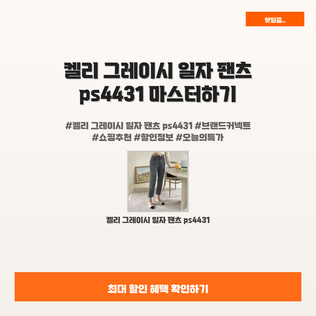 🛍️ 이 포스팅은 네이버 쇼핑 커넥트 활동의 일환으로,판매 발생 시 수수료를 제공받습니다.오늘 소개할 제품은 단언컨데,,그야말로 켈리 그레이시 일자 팬츠 ps4431이라구요아니 진짜... 요즘 매일 입고 싶을 정도로 완전 편한 옷이 필요하잖아요?"켈리 그레이시 일자 팬츠 ps4431" 이거 입어보면 그 느낌이 바로 올 거예요!정말 대단한 건, 이 팬츠를 착용한 순간부터 여러분의 스타일과 핏이 완전히 변화할 거란 거예요... 할인까지 받으면 이득이잖아요!그래서 여러분도 이 기회를 놓치지 마세요... 저도 여러 번 추천하고 싶은 만큼 진짜 만족할 제품이거든요!가성비도 좋고, 트렌디한 디자인이 매력적이에요. 후회 없는 선택이 될 거라고 보장해요!※ 이거 진짜 제가 직접 써보고 쓰는 리뷰예요 광고 아님!!켈리..